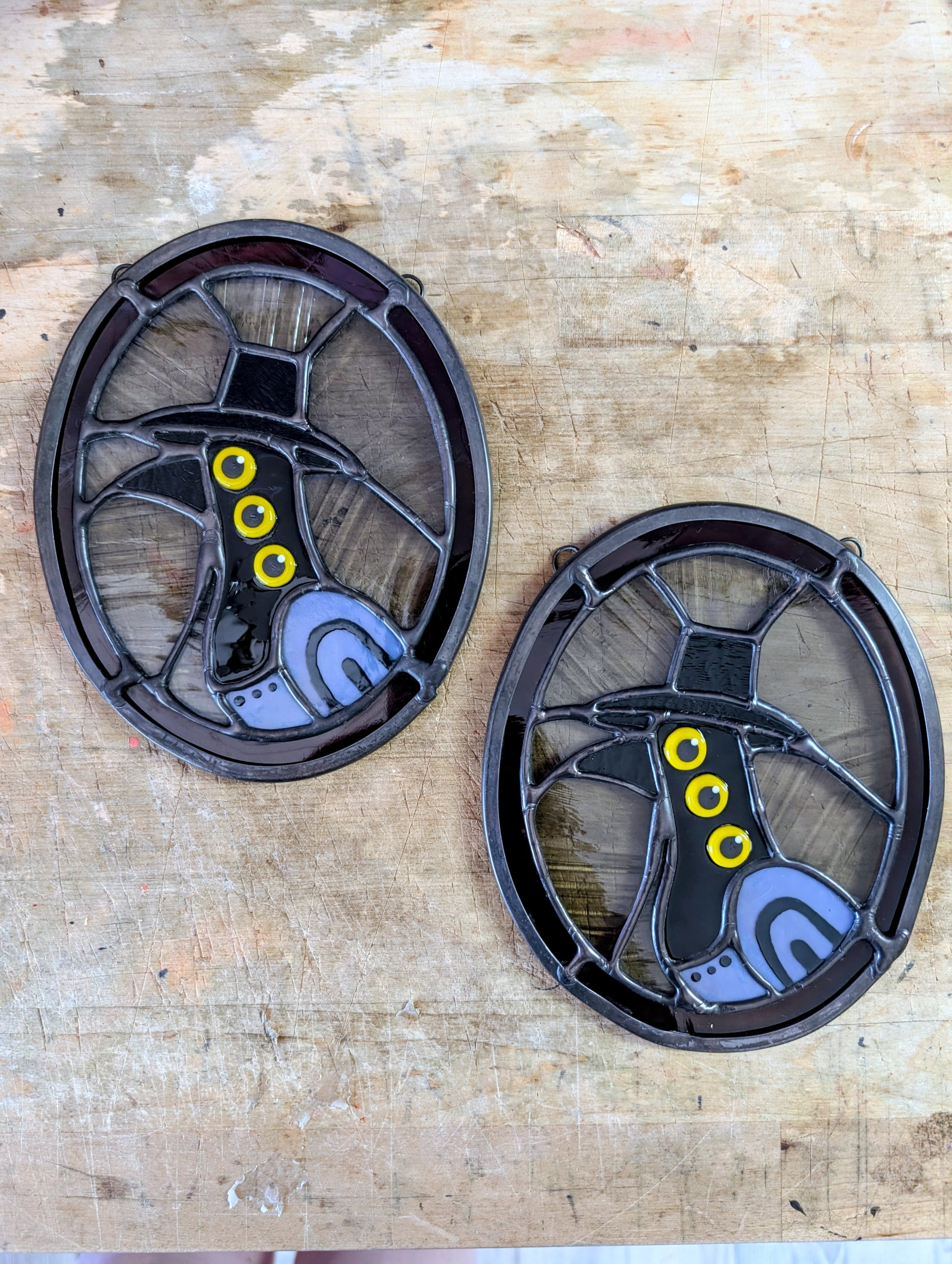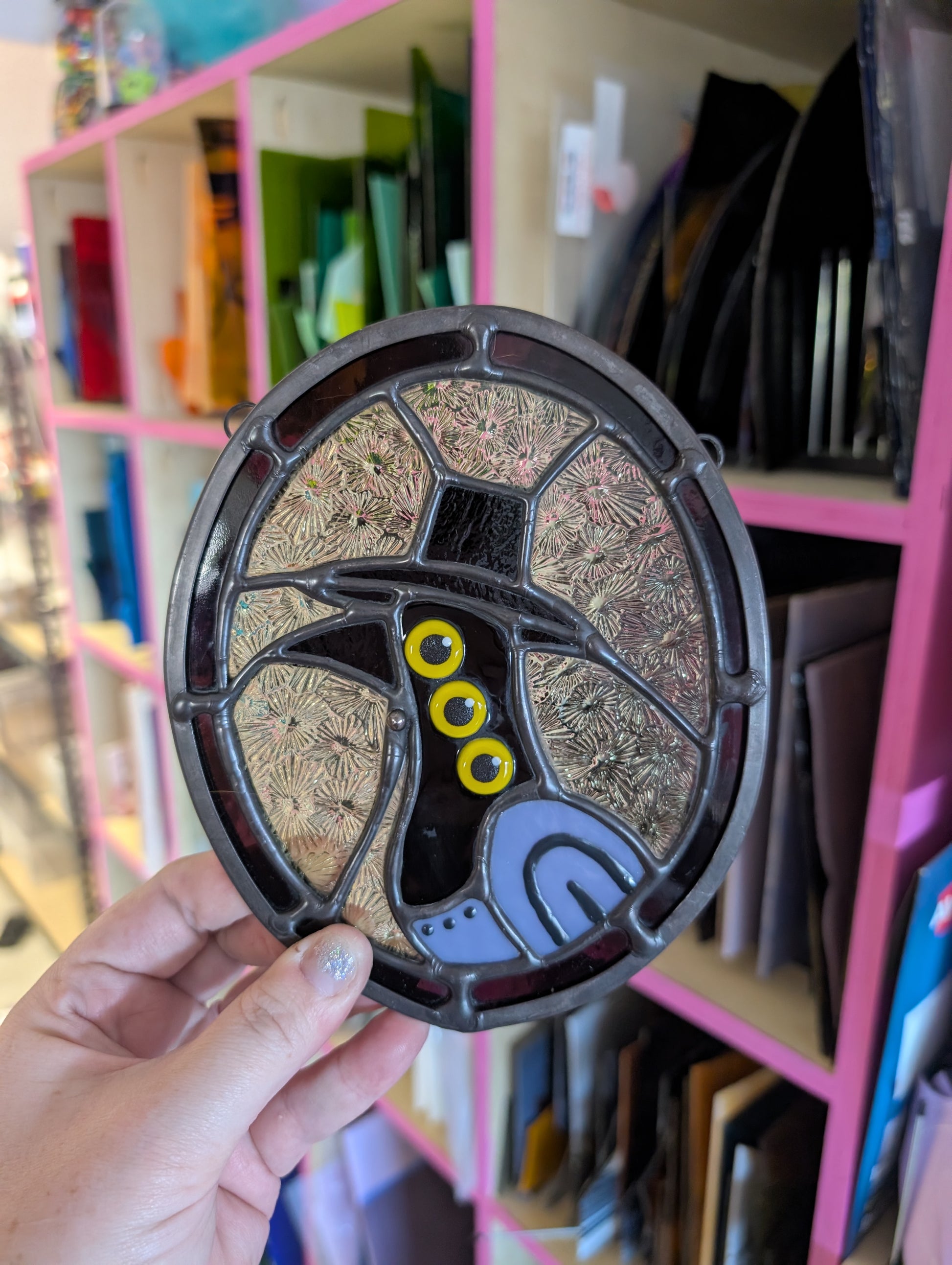 This piece was made using traditional stained glass techniques. Please wash hands after handling.