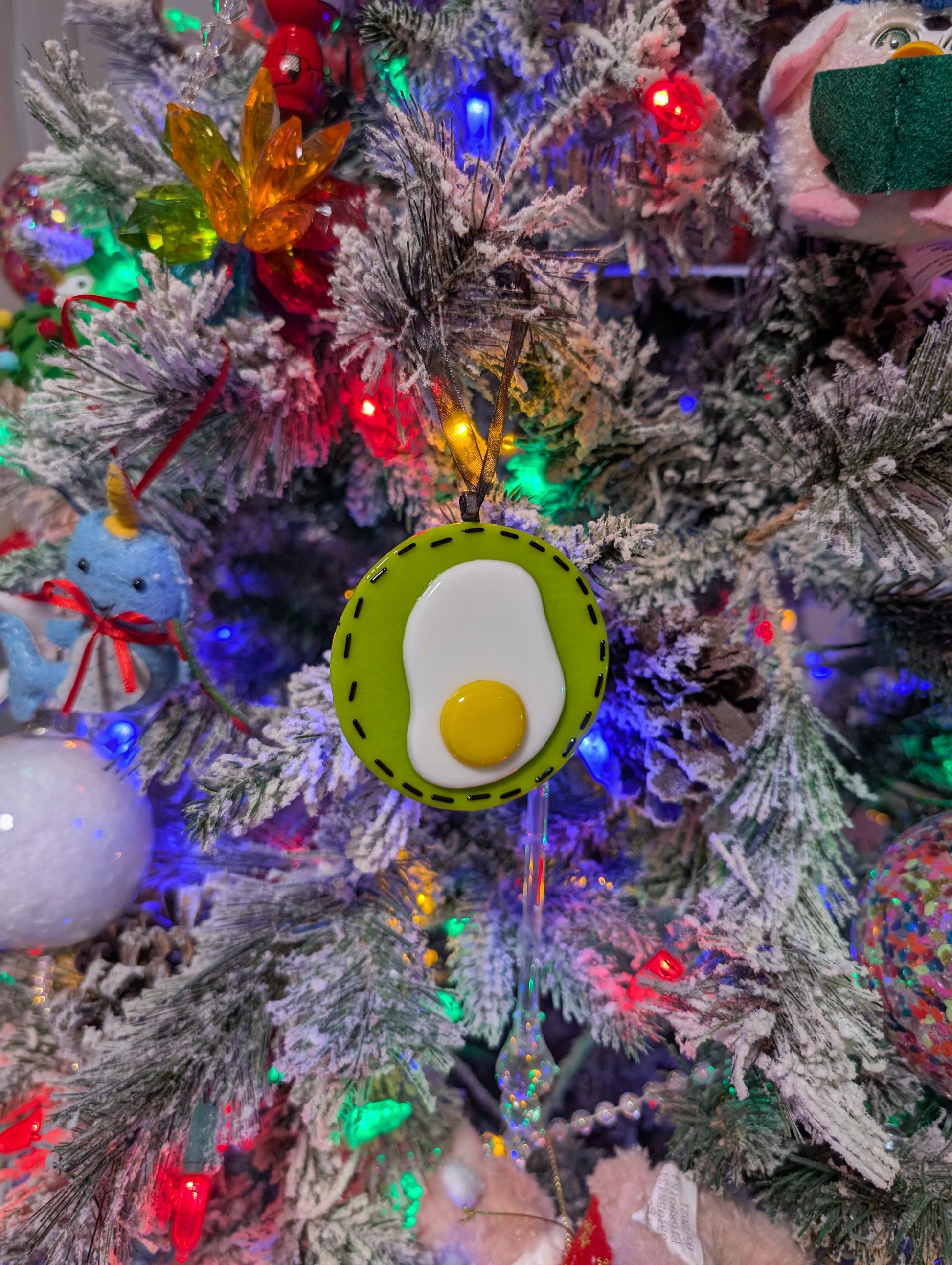 This ornament measures at appx. 3" and comes with a hanging ribbon and ornament box.