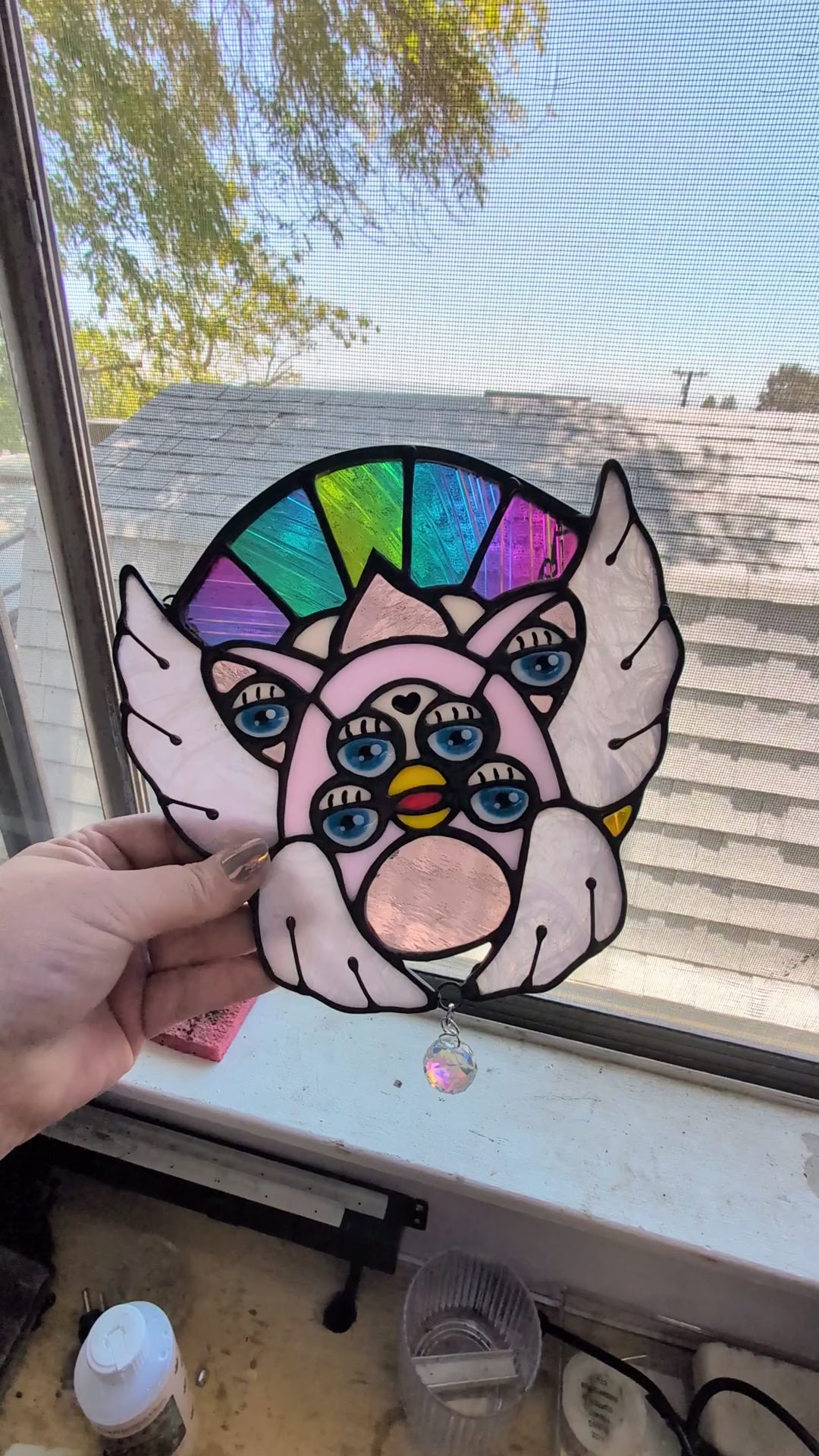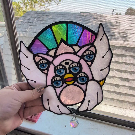 Pink & Rainbow Dichroic Biblically Accurate Furby Angel Stained Glass